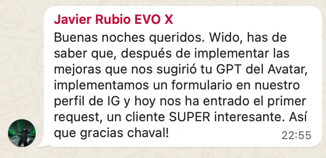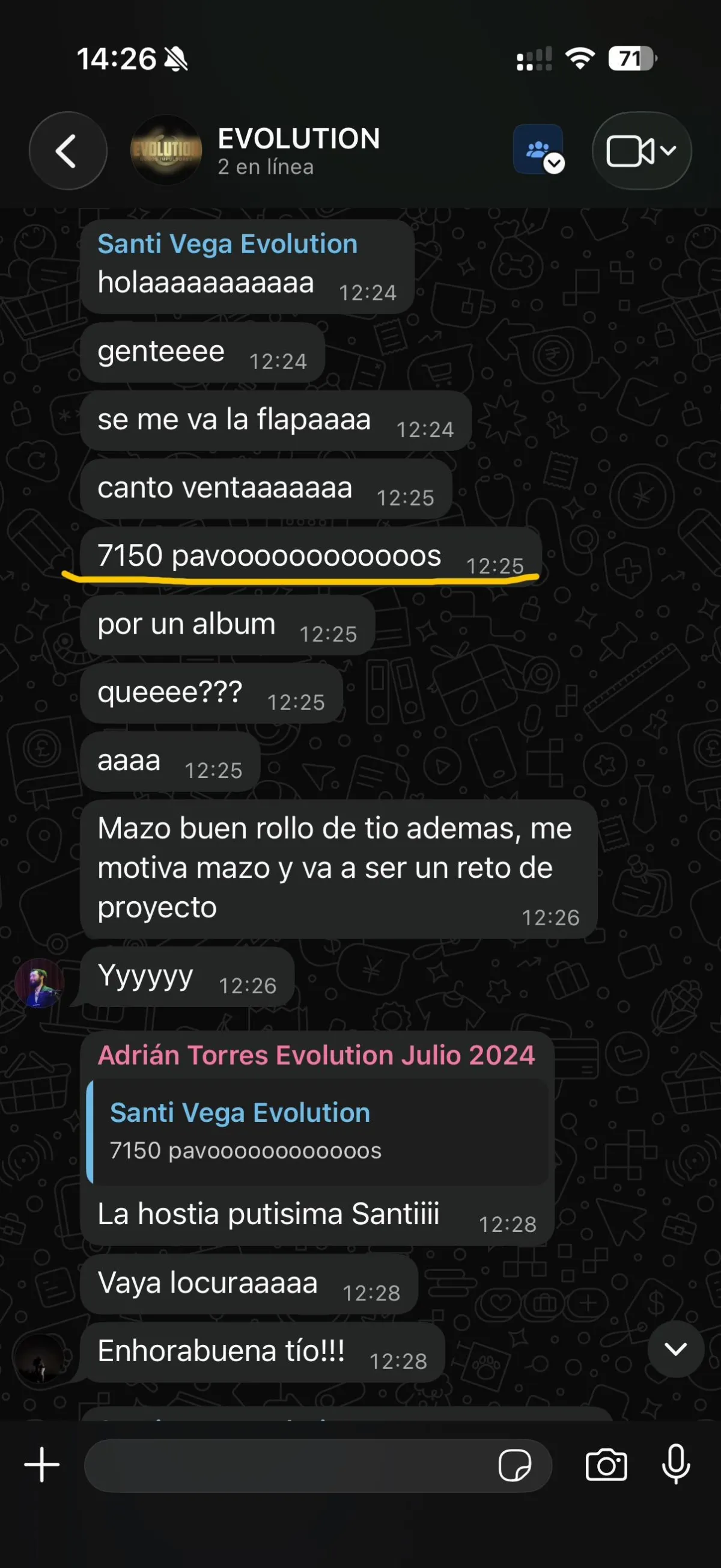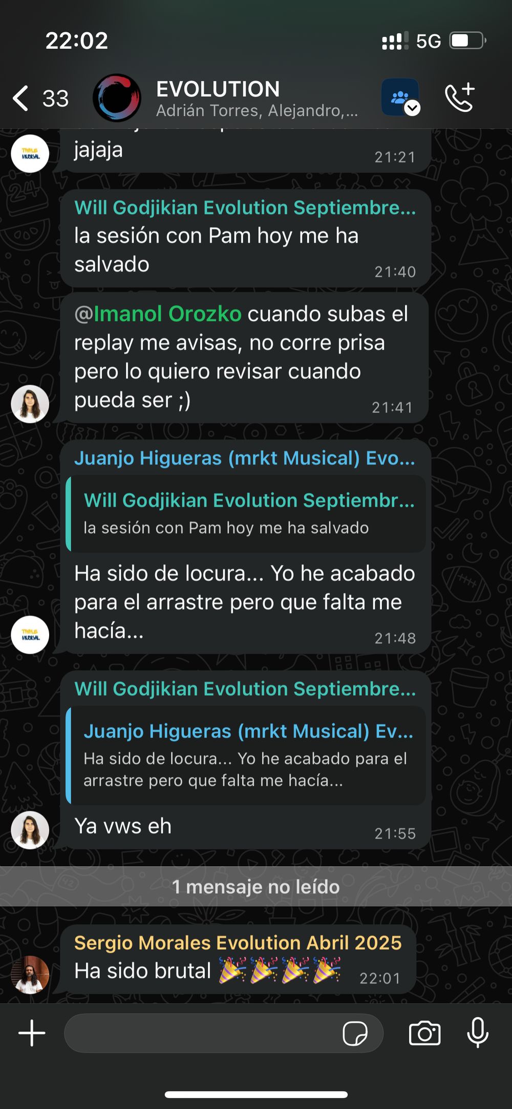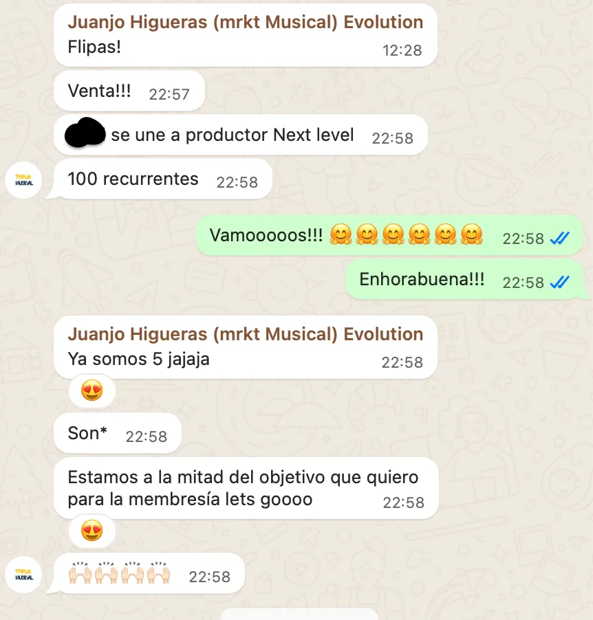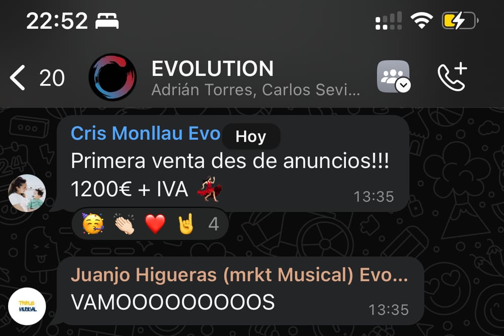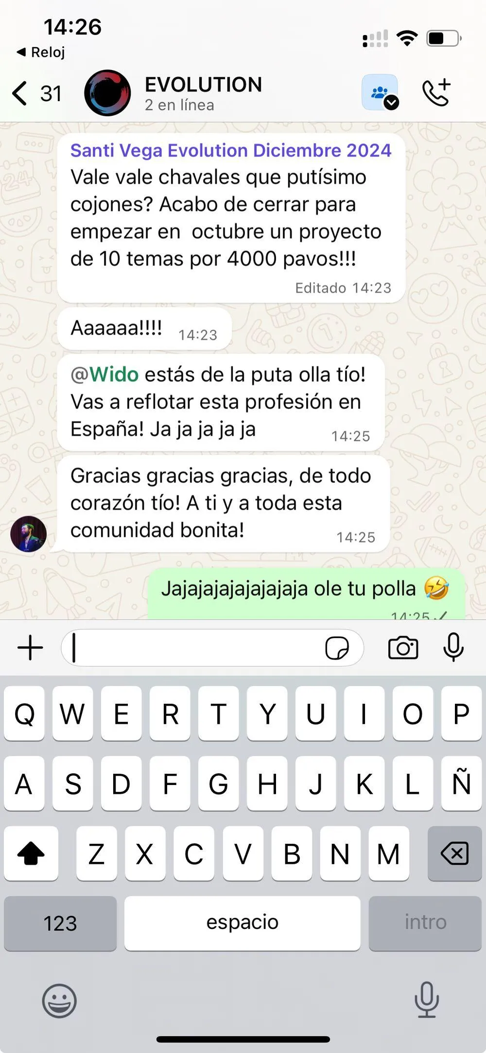 Es el mayor caso de éxito dentro de Evolution, habiendo hecho 19.700€ en un solo mes con su negocio musical. Es en una de las mayores referentes del derecho musical Hispano.