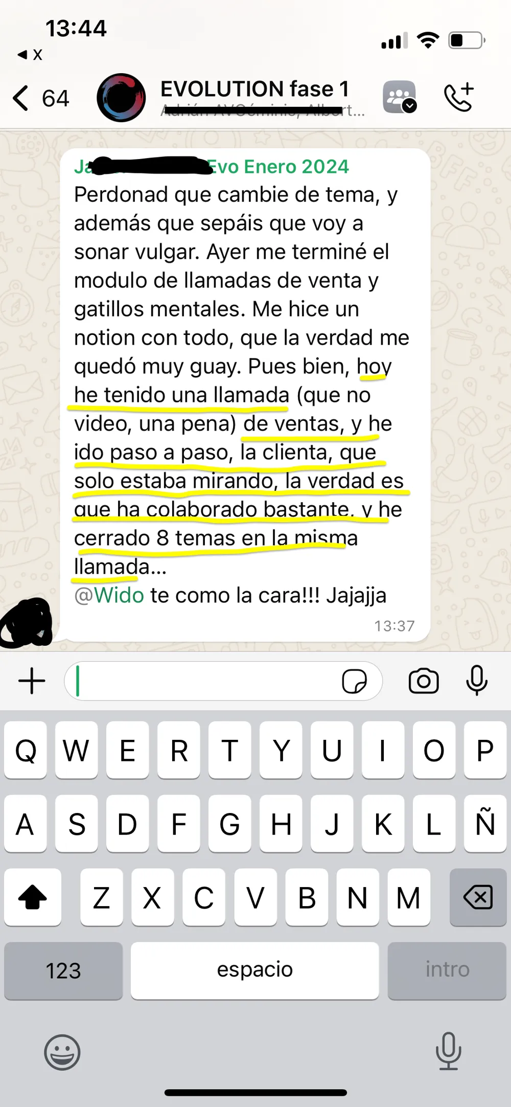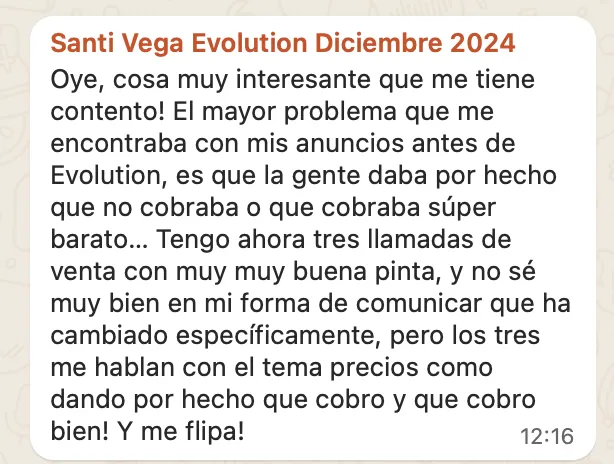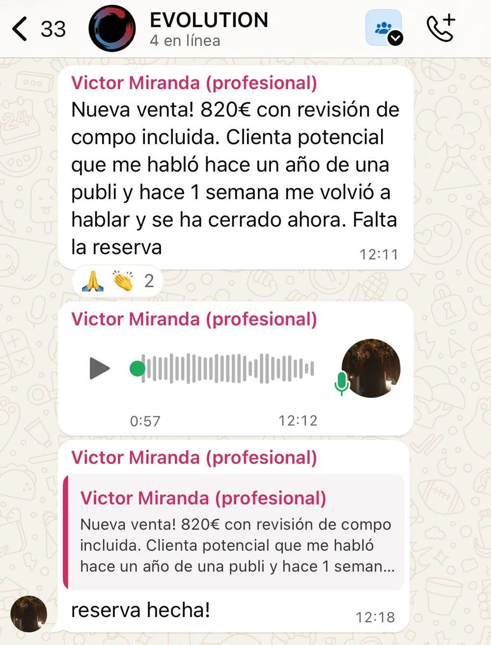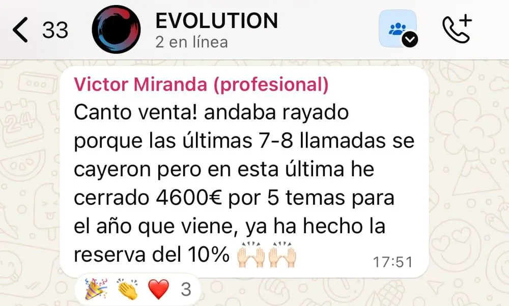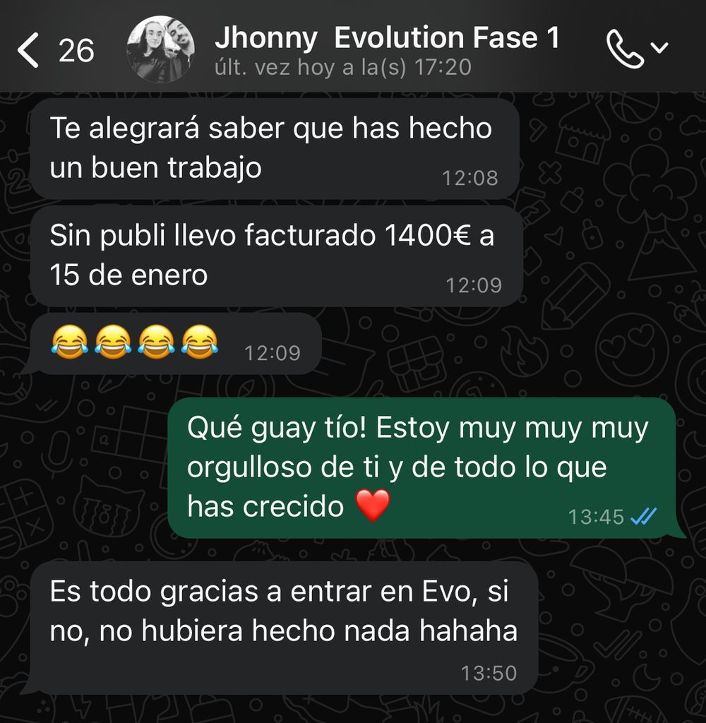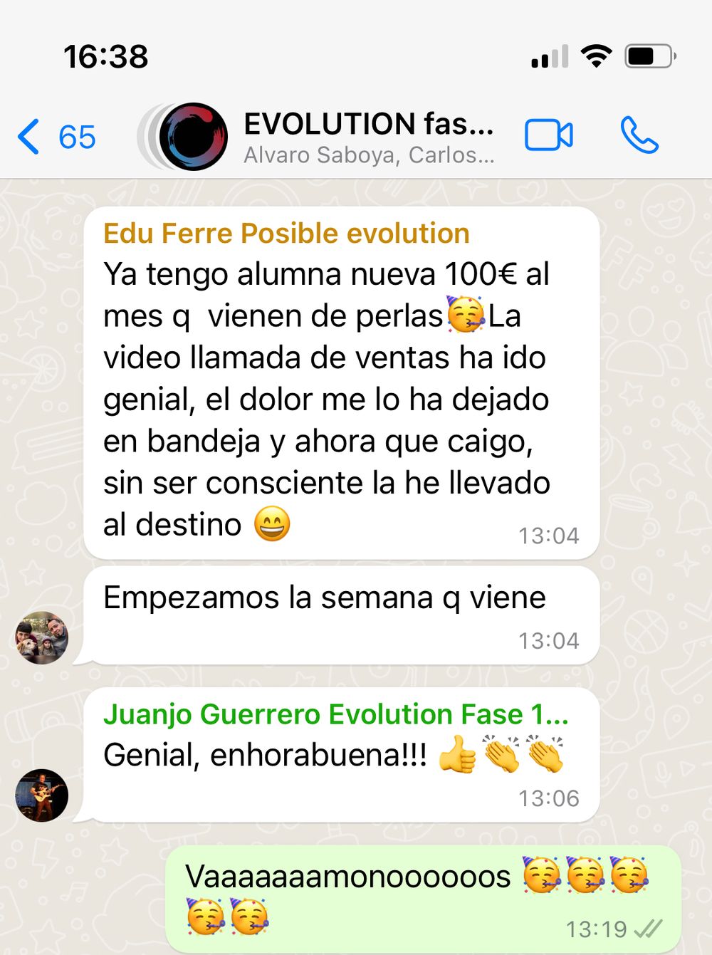 En su primer mes en Evolution hizo su primera venta, 6 meses logró hacer +8.000€ en un mes y 9 meses después está facturando +10.000€ / mes. [Vídeo de hace 6 meses].